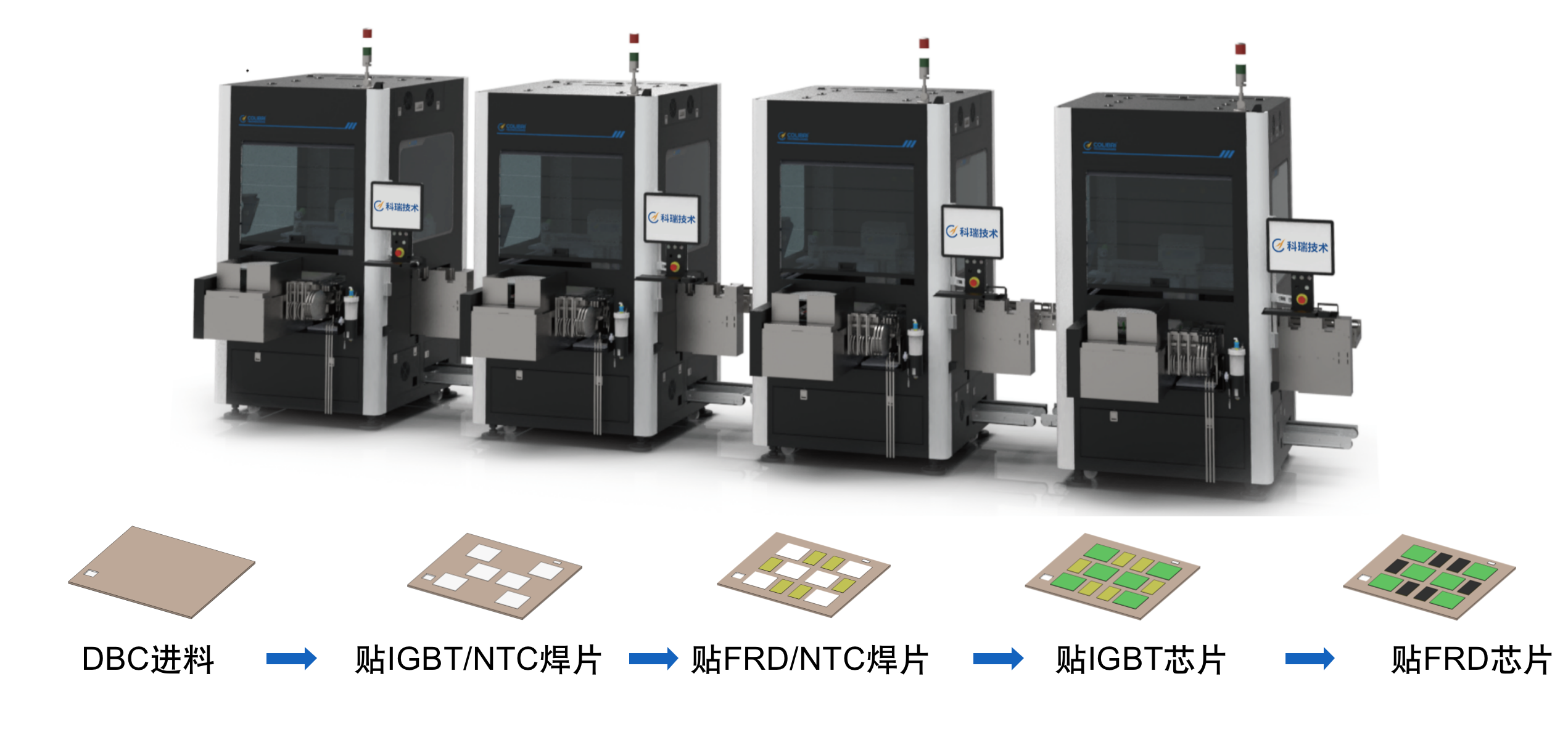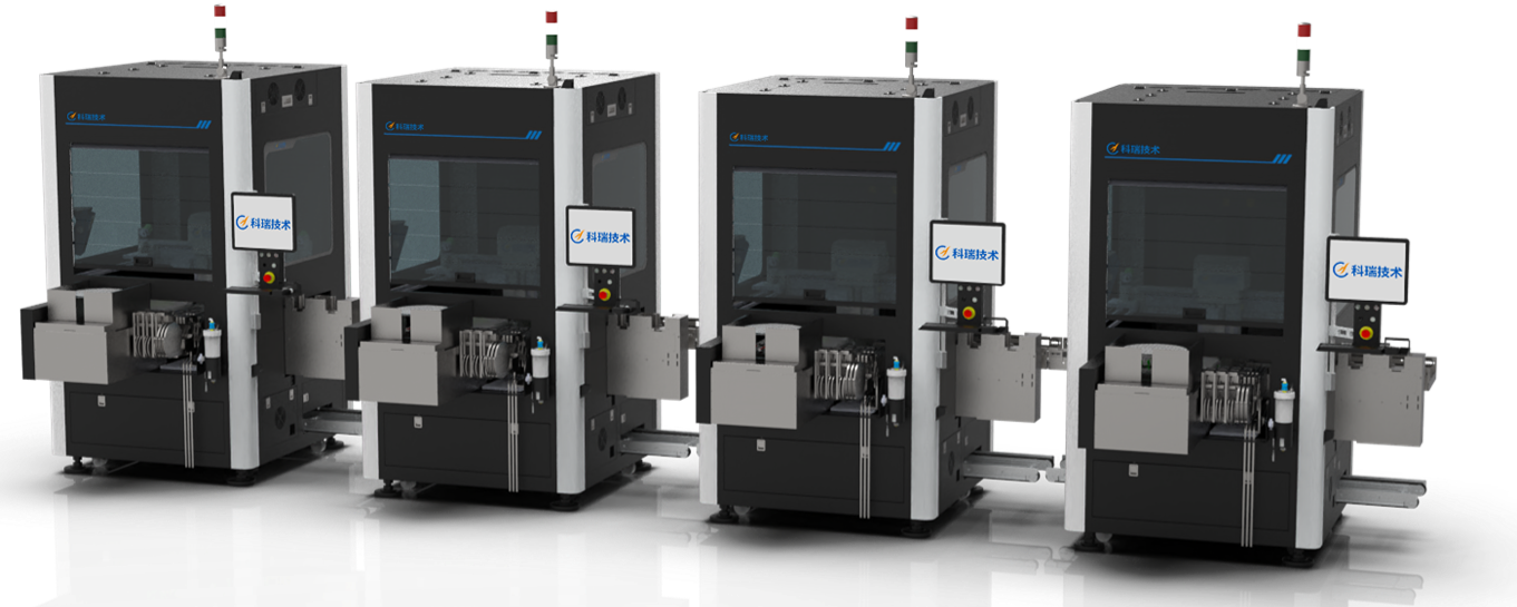 線體由多臺(tái)芯片焊片多功能貼裝設(shè)備組成,可根據(jù)不同的工藝流程靈活串線,滿足不同工序的CT差異,實(shí)現(xiàn)單一動(dòng)作完成復(fù)雜貼裝流程,最大效率利用設(shè)備,提高產(chǎn)能。設(shè)備自帶下層載具回流功能,與前后自動(dòng)上下料設(shè)備對(duì)接,實(shí)現(xiàn)整線全自動(dòng)作業(yè)。