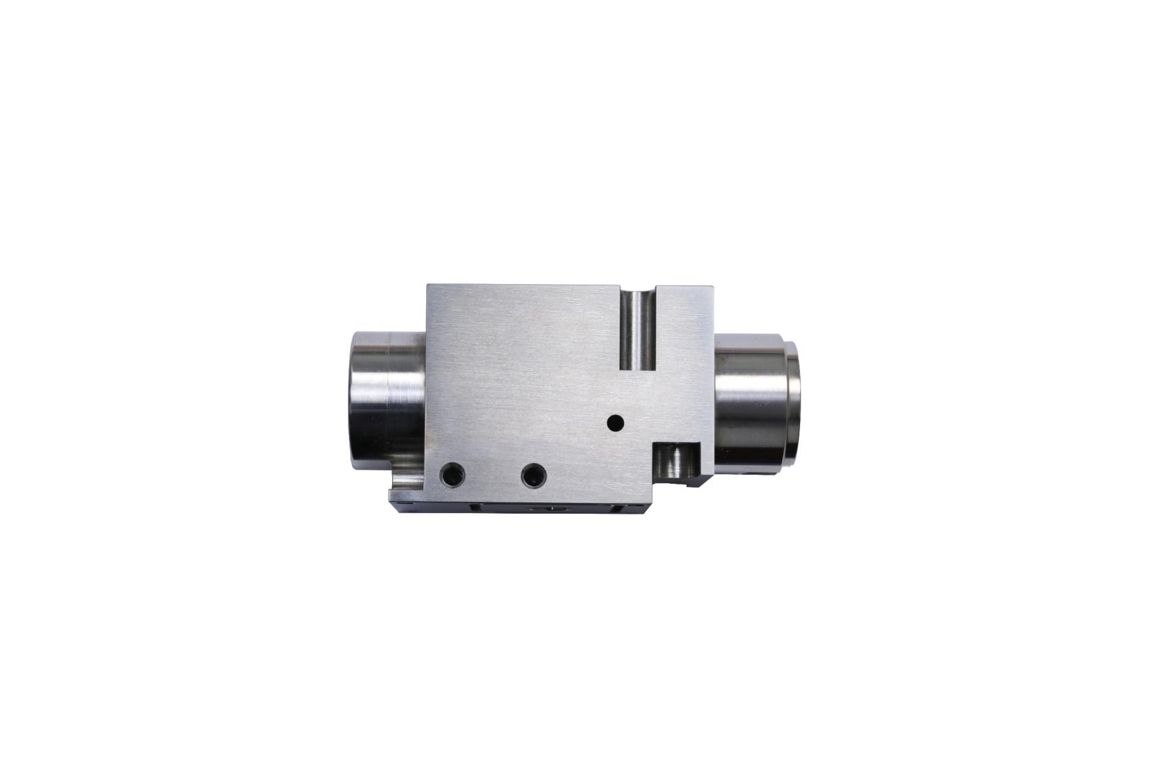 產(chǎn)品名:HGA彈性臂壓塊 材 料:440C或CD650鎢鋼 主要工藝:電火花,慢走絲、平磨 技術(shù)難點(diǎn): --零件尺寸小而幾何尺寸/形位公差精度極精; --所有精孔尺寸/位置精度0.003mm由慢走絲/鏜磨加工; --頂部十余處電火花加工異型淺槽輪廓/深度公差0.003mm --整體金剛石涂層 | 產(chǎn)品名:PZT載板 材料: Al 6061-T6 主要工藝:CNC 技術(shù)難點(diǎn): --所有120控制孔徑公差0.005mm以及位置度公差0.005mm. --硬質(zhì)黑色氧化處理后保證整體平面度0.02mm以內(nèi)。 | ![]() 產(chǎn)品名:集成安裝盒 材料:AL6061 主要工藝:CNC,硬黑氧化+化學(xué)轉(zhuǎn)化膜 技術(shù)難點(diǎn): -- CNC多軸加工;六面平面度、平行度、垂直度全部0.005~0.01mm; --三面精孔位置度0.01以內(nèi); --近300處尺寸由CNC多次/多面加工/CMM三坐標(biāo)測(cè)量確保。 |