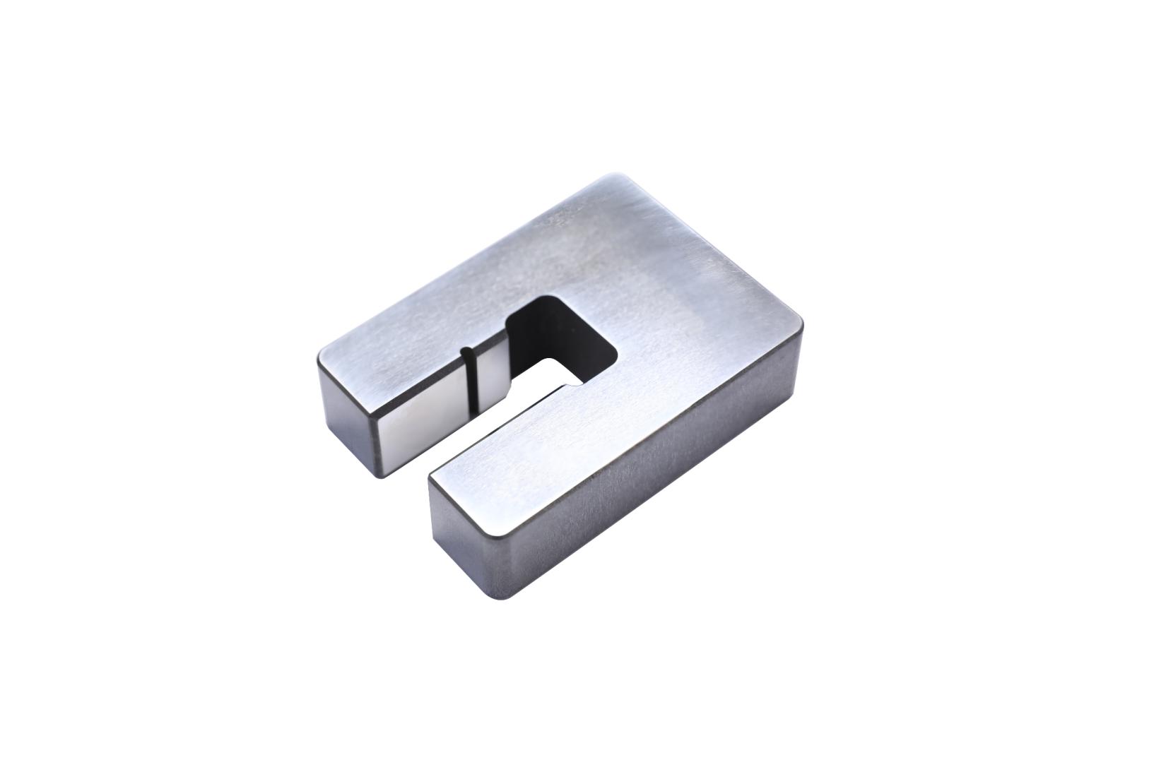 ![]() 產(chǎn)品名:DK沖針 材料: 440C 主要工藝:磨床、電火花 技術(shù)難點(diǎn): --細(xì)長(zhǎng)特征加工難度大,內(nèi)外徑同軸度0.005mm; --沖針頭部輪廓度0.003mm; --整體氮化鈦涂層 | ![]() 產(chǎn)品名:HGA成型沖頭 材料: CD650 + PCD 主要工藝:焊接、平磨、慢走絲 技術(shù)難點(diǎn): -- PCD硬度及壽命高于鎢鋼多倍 --尺寸與形位公差精度 0.003mm -- PCD部分表面粗糙度Ra0.2 | ![]() 產(chǎn)品名:HGA壓頭 材料: 440C 主要工藝:電火花,拋光 技術(shù)難點(diǎn): --外形尺寸及形位公差0.003 --頂部電火花加工異型槽輪廓/深度公差0.003mm --整體金剛石涂層 |