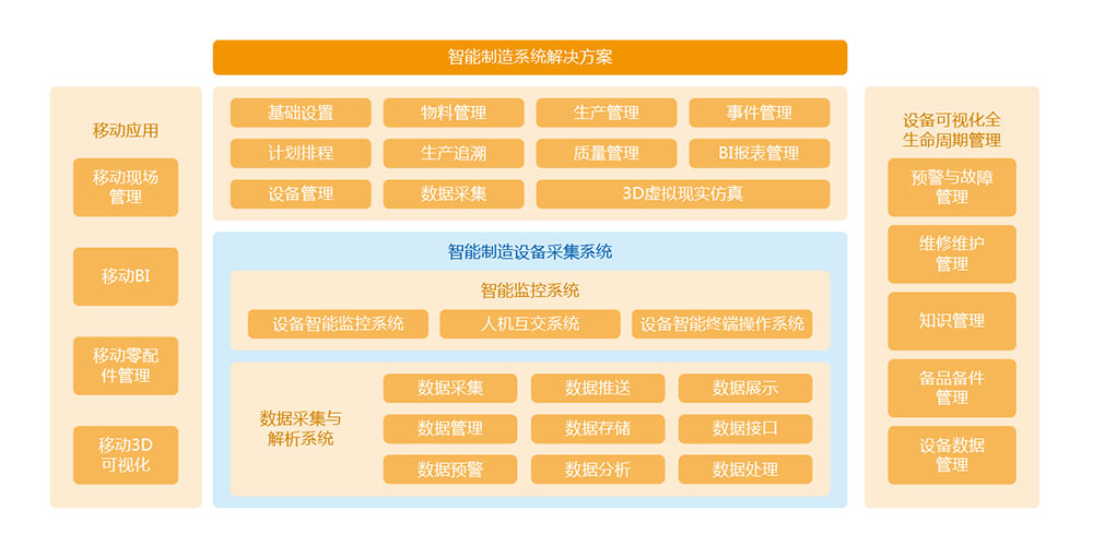 公司技術(shù)SCADA(Supervisory Control And Data Acquisition)數(shù)據(jù)采集與監(jiān)控系統(tǒng)將所有機床及相關(guān)設(shè)備數(shù)據(jù)連接在一起,實現(xiàn)車間可視化,生產(chǎn)透明化,設(shè)備狀態(tài)及報警信息實時化,產(chǎn)能、OEE及稼動率的統(tǒng)計動態(tài)化,加工信息及設(shè)備信息可追溯化,并可通過遠程終端或智能手機等移動通信體讓生產(chǎn)調(diào)度對生產(chǎn)現(xiàn)場進行遠程監(jiān)控和快速響應(yīng),從而對生產(chǎn)車間進行全面、及時、有效的管理,達到可視化節(jié)能生產(chǎn),為實現(xiàn)智能制造自動化無人工廠提供軟件系統(tǒng)支持。